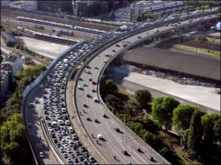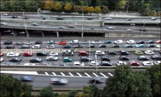 — documentation photographique par la recherche de points de vue pertinents donnant à voir le paroxysme de l’engorgement automobile;