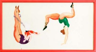 Et c’est encore sur le même fond coloré qui sert d’étendoir aux personnages de cette BD pop que se dessinent à la Fondation d’entreprise Ricard les silhouettes tubulaires de l’exposition de Sarah Tritz. Un théâtre miniature de noces contre nature, de couples mal assortis, qui dessine en creux une nouvelle représentation du monde à l’envers.