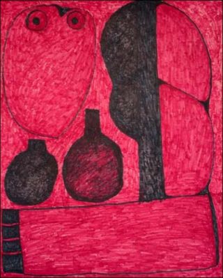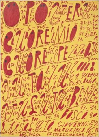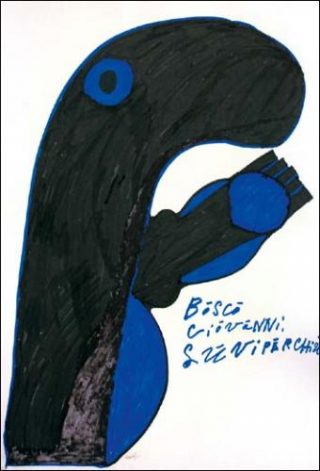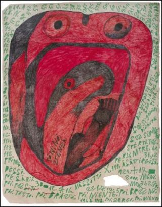 Les dessins au feutre de Giovanni Bosco exposés à la galerie Christian Berst constituent une part discrète de son œuvre, car c’est dans la rue, sur les murs de sa petite ville sicilienne de Castellamare del Golfo que s’épanouissait pleinement le sens de sa pratique. Dans sa ville, il reste une centaine de fresques de Bosco, mort en 2009. La reconnaissance artistique est cyniquement advenue sur le fil du rasoir…