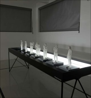SMITH, Les Intriqués, 2015-2016. Série de 7 sculptures 3D sur table lumineuse. 35cm de hauteur chacune,