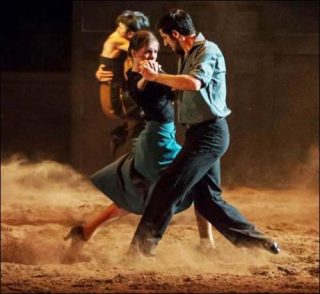 Comme son titre ne l’indique pas, Valser est une ode au tango. La scène est transformée en arène où les danseurs évoluent sur de la terre. La terre qui garde la mémoire des traces de pas, telles des empreintes. Telle la violence des sentiments qui laisse ses empreintes dans l’âme et dans le corps. Mais le décor scénique casse aussi les codes du trop policé tango argentin pour lui redonner sa puissance chorégraphique et le sortir des stéréotypes.