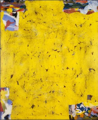 — Babel IV, « Provenant », 1982-1983. Toile tarlatane, acrylique, graphite, collage de papier journal 250 x 300 cm.