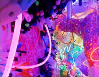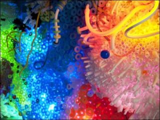 Adela Andea manipule et associe chacun de ces éléments pour former une construction systémique qui confère une dimension organique à cet environnement artificiel. Un écosystème composé de plastique et de lumière qui fait de nous les explorateurs d’un univers sensoriel né d’une création ex nihilo. A l’image d’un puissant siphon marin, ces gyres de matériaux hétéroclites agissent comme des vortex qui attireraient les résidus de notre société de (sur)consommation, interrogeant la durabilité des sociétés humaines, ainsi que notre relation au monde et aux objets, et ce qu’il en restera…