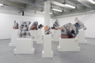 L’écosystème de l’exposition «Mental Matter» fait de notre boîte crânienne un espace d’exposition sans limite. A travers plusieurs installations ambitieuses, l’exposition part du présupposé que nos neurones érigent une partie de notre encéphale en une sorte de suite Adobe contenant un logiciel de retouche photo, un logiciel de mise en page, un autre de conception graphique au service de notre mémoire. Notre cerveau possède donc les ressources nécessaires pour transformer le trop-plein d’œuvres d’art en matériaux brut. Les collages résultant de ces opérations, exposés ici sur des fonds en tissus généralement utilisés par les photographes, deviendront ensuite des données numériques qui serviront à leur tour de matière potentielle pour composer des œuvres d’art.