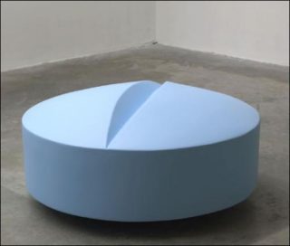 Philippe Ramette. Ces encoches correspondent à un point de faiblesse que j’ai souvent observé sur les statues de dictateur. Cette sculpture est à rapprocher de Sculpture sécable, qui correspond à l’agrandissement d’un cachet d’anxiolythique. Le médicament peut avoir une effet inquiétant pour certains, rassurant pour d’autres. Ce qui m’intéresse, c’est qu’il n’est visible sous cette forme qu’un temps limité et qu’il devient une sculpture minimale et abstraite.