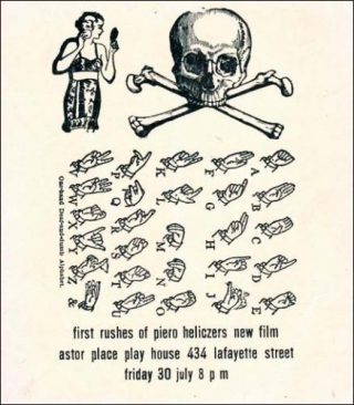 En 1965, Piero Heliczer filme la première apparition du Velvet Underground à la télévision dans l’émission de Walter Cronkite pour CBS news. C’est son engagement dans le cinéma expérimental qui l’amène à fonder la Paris Filmmakers Cooperative afin de présenter ses films ainsi que ceux d’autres cinéastes dont Tony Conrad, Paul Sharits, Andy Warhol, Jonas Mekas, Stan Brakhage…