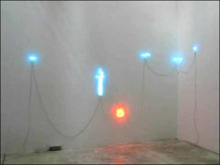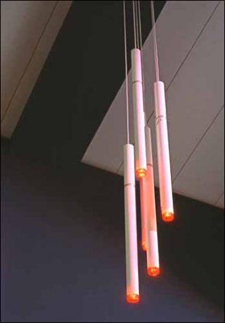 — Prestige, 2005. Verre soufflé peint, matériel électrique. 95 cm x diam. 6 cm chaque.