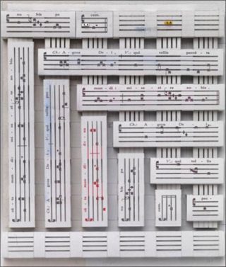 De son côté, la série Agnus Dei, œuvres plus récentes de Thomas Bayrle, gardent la thématique du réseau autoroutier (avec des voitures miniatures collées ici ou là sur les entrelacs de carton), réseau autoroutier que l’on retrouve dans les vidéos et qui se muent ici en portées pour des partitions de chants monastiques du Moyen-Âge.
