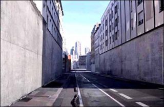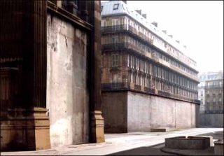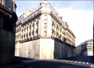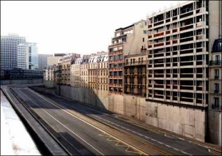 Passer du plein jour de la rue à la semi-obscurité de la galerie, c’est ici passer de la ville que l’on ne voit plus à celle que l’on n’avait pas imaginée. ViderParis (2001) étant constituée en diaporama faisant lentement défiler cinquante vues de façon aléatoire, cette œuvre, en effet, présente au spectateur qui a encore derrière lui l’agitation de la capitale un monumental plan frontal de ses rues désertées. Rues comme autant de carrefours, sections de ponts ou de boulevards occupant du tiers à la moitié de l’image, elles y forment une solide assise à l’architecture haussmannienne que l’on dirait photographiée dans l’épaisseur même de ses murs. Et ville rendue muette, dépouillée de tout signe du vivant, c’est également dans l’ambiguïté de sa fausse grandeur nature qu’elle saisit le visiteur franchissant la porte. Les diapositives étant projetées sur le mur, c’est-à-dire en trois mètres par cinq, le spectateur confronté à la démesure de l’image se trouve en même temps livré à l’espace qu’elle construit autour de son corps. C’est-à-dire à l’espace de réception de l’œuvre où, malgré la conscience de son écart avec l’image, le regardeur d’une ville-fantôme déployée du sol au plafond en est aussi l’arpenteur, longeant les bâtisses depuis les rues vides amenées au niveau de ses pieds.