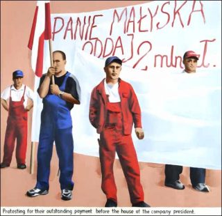 — Protesting for their Outstanding Payment Before the House of the Company President, 2003. Huile sur toile. 170 x 175 cm.