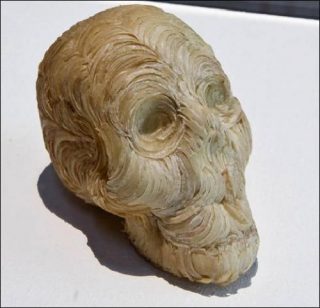 Laurent Le Deunff. Rien de tout ça. Ca faisait partie d’un cheminement : après les sculptures en dents et en cheveux, c’était assez logique pour moi… D’autres artistes y ont pensé avant moi, notamment Tim Hawkinson et David Shrigley. Crâne est une sorte de vanité car je l’ai réalisé pendant une période d’ennui, à la fin de mes études aux Beaux-Arts, et en pensant à l’exposition « La mort vous va si bien » organisée au Musée des Arts d’Afrique et d’Océanie de Paris en 2002.