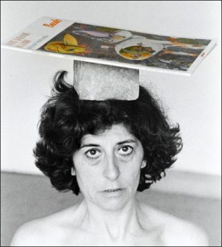 Mais au-delà de ces réflexions existentielles sur l’identité et le temps, Esther Ferrer retourne vers le politique et le féminisme, en maniant un humour féroce. Le péché originel est relu à l’aune d’un entrejambe féminin à la pilosité multicolore. Europortrait se moque de l’Europe économique, capitaliste et spéculatrice en vomissant des torrents de pièces de monnaie. La cagoule Terrorist tourne en dérision nos phobies et la chasse aux sorcières islamistes. Autoportrait de style marxiste frôle le grotesque en parant Esther Ferrer d’un masque de farce-et-attrape. Notre fonds idéologique, culturel et historique bascule donc dans l’absurde, l’essentiel étant pour Esther Ferrer de demeurer libre, indépendante, de résister aux valeurs convenues que véhicule l’opinion.