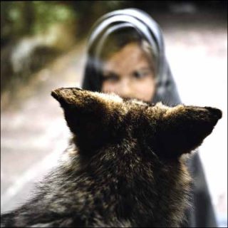 Dans cette œuvre avec le loup, les références artistiques sont multiples. L’utilisation du feutre comme matériau pour recouvrir le corps de l’enfant fait directement référence à Joseph Beuys.