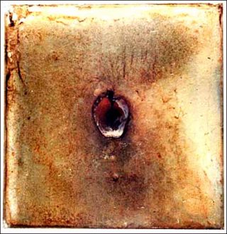 Après avoir évidé une pomme de terre, l’artiste laisse la chair se décomposer et place les moisissures ainsi obtenues sur un support préparé, un « milieu de culture ». Celles-ci prolifèrent, se contaminent entre elles, développant un micro-organisme aux couleurs et textures étonnantes. Ensuite, ces cultures sont placées entre deux verres. En fixant ces traces vivantes, qu’il convertit en une surface plane et délimitée — la surface de l’œuvre — Messoubeur en suspend la transformation, en gèle le devenir. La réalisation de l’œuvre équivaut ainsi à une conservation.