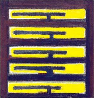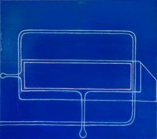 La ligne répond à la couleur: parfois née de la couleur ou de son absence dans un renversement des normes entre le fond et la forme (Untitled Yellow and White), parfois s’affirmant en tant que dessin notamment au fusain (Untitled, 2013). Dans High Tide, une ligne faisant allusion à la perspective crée une sensation de volume qui résonne avec la profondeur du pigment bleu. Un système complexe d’échos et de rappels se crée entre les toiles: les couleurs et les formes se répondent, tels les motifs de Once above once below et d’Untitled Yellow Pink White. L’image devient familière au travers de formes rappelant les objets quotidiens (White gray and yellow). Mais au‐delà de l’image, c’est l’idée de l’image que Paul Pagk décrit, comme en témoigne la bande jaune qui barre l’objet géométrique d’OGLS 128.
