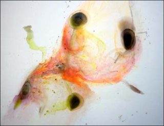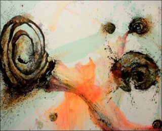 De là se construit une parabole païenne de l’existence comme flux et échanges. Une parabole contenue dans la forme même des toiles, rythmée par des jaillissements, éclaboussures, coulures, implosions et explosions, cloques… La peinture de Lionel Sabatté grouille comme la vermine d’un dynamisme permanent, d’une vie qui confine au dégoût tant elle porte les signes de son achèvement.