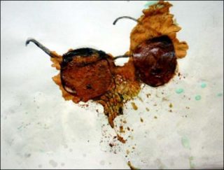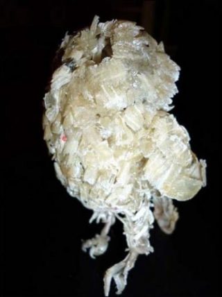 — Lionel Sabatté, Chevêche Athéna, 2010. Peaux de pied, ongles, vernis. 10 x 16 cm