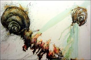 — Lionel Sabatté, Conversation intercoquilles, 2009. Techniques mixtes sur toile. 200 x 300 cm