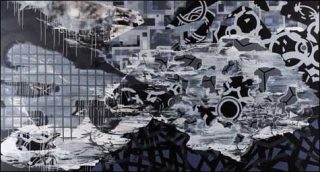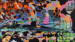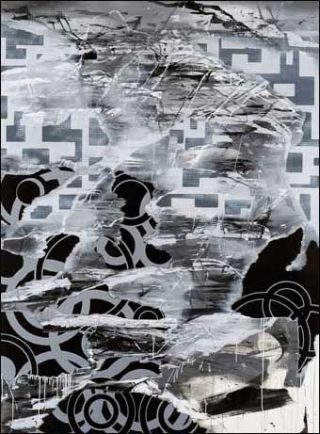 Deux grands types de toiles sont présentées dans la galerie : les colorées, aux couleurs vives et contrastées, et les monochromes, tout en dégradés de gris. Mais toutes ont le même type de structure, de composition, de désorganisation chaotique.