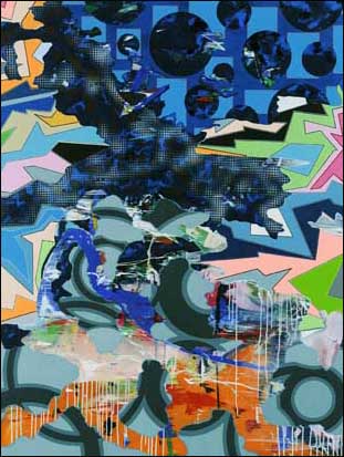 Les différents niveaux interagissent entre eux, mais l’œuvre apparaît comme si la couleur elle-même déchirait la toile, déchirait l’espace, dévoilant couche après couche. Elle se décompose, coulures après coulures, parsemant la toile, comme si, fondant sous l’effet d’un acide, chaque couche fondait pour révéler ce qui se cache en-dessous.