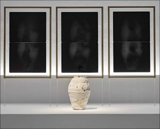 Les deux dernières séries de l’exposition offrent une nouvelle dialectique entre la matière et la main de l’artiste. Il vuoto del vaso expose un vase ébréché dans une boîte lumineuse, dont les parois accueillent trois radiographies. Naïvement, on croit tout d’abord qu’il s’agit d’une radio du bras de Penone. Mais en réalité, il s’agit de l’intérieur du vase, rempli d’argile pétrie par l’artiste, dans laquelle son empreinte s’est figée.
