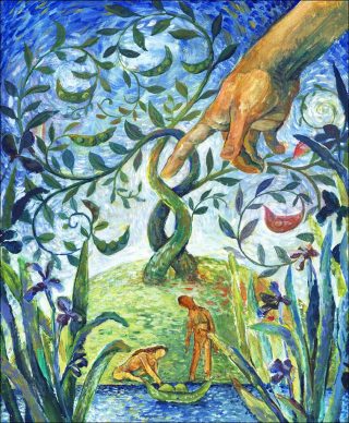 Parmi les Å“uvres exposées, l’œuvre de MA Penghao, La Touche beauté, est sans doute la plus saisissante. MA Penghao a réaliser son tableau spécialement pour l’application « SnapPea » : l’arbre de la connaissance et l’arbre de vie du jardin d’Eden, le jardin des délices. La forme de ces arbres est comme un modèle d’ADN, symbole de la naissance. MA Penghao pense que la touche entre nos doigts et l’écran crée la vitalité de l’internet.