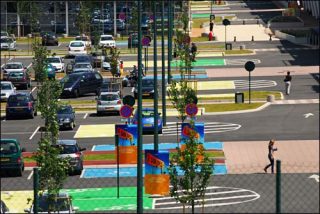 Leurs photographies s’appuient sur les visages et les paysages d’un territoire. Jean-Christophe Bardot longe les réseaux de communication, aux abords desquels tout est rutilant de nouveauté et de modernité, manière délicate de cacher les problèmes et les cendres encore fumantes de l’histoire ouvrière. Tout comme les centres commerciaux qui ont fleuris dans le paysage lorrain et qui fascinent tant Bernard Baudin.