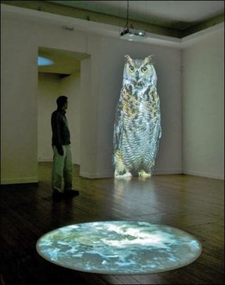 Il mettra ensuite le visiteur face au Hibou: pour les Grecs, la chouette symbolisait précisément la déesse Athéna, qui accompagne Ulysse et qui, apparaissant parfois dans la brume ou la nuit, lui apporte clairvoyance et sagesse au milieu des périls. (Présente sur les pièces de monnaie athéniennes, la chouette, était aussi symbole de richesse et d’abondance, et son survol de l’armée grecque avant une bataille, un présage de victoire.)