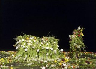 Une danseuse au milieu des fleurs qui jonchent la scène, un cercueil de verre embué, et les fleurs piétinées et écrasées par ce corps plein de vie qui finissent par se disloquer sous lʼeffet du mouvement ininterrompu, comme sʼil ne fallait jamais cesser de bouger de peur quʼelles ne finissent par prendre le dessus pour venir triomphalement, lorsque leur heure sera venue, recouvrir le corps devenu inerte.