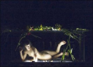 Toute la beauté de Preparatio mortis vient sans doute de sa différence. Annabelle Chambon, parfaite interprète de sa dixième pièce avec le créateur flamand traverse évidemment les gestes qui appartiennent au répertoire de Jan Fabre: coups de reins, fellations plus que suggérées, saccades, chutes, slow motions impeccables. Pourtant la pièce est, à sa manière, intimiste. Dans le noir, une longue introduction à l’orgue (pièce contemporaine de Bernard Foccroulle) laisse à chacun le loisir d’une mise au point avec les rituels de deuil. Puis la fascination d’un piédestal couvert de fleurs qui pourrait tout aussi bien être des crânes et des mains tant la lumière caravagesque est réussie. Là dessous, cela bouge. Sans que l’on sache très bien quoi. Des contractions, des reptations secrètes: sous les couronnes mortuaires quelque chose nait. La femme apparaît, glisse le long des gerbes de glaïeuls dans un tombé digne des plus grand tableaux orientalistes. Vient alors la danse contre la mort, les fleurs piétinées, enlacées, jetées vers les cieux comme des gerbes littérales. Puis, lors d’un autre noir, Annabelle se retrouve dans le cercueil de Blanche-Neige. Entre les parois de verre, sous l’inscription gothique qui doit être la date de naissance de la danseuse-chorégraphe. A l’intérieur des papillons s’abîment à être touchés tandis qu’elle dessine quelques traces de son passage et que la buée gagne.