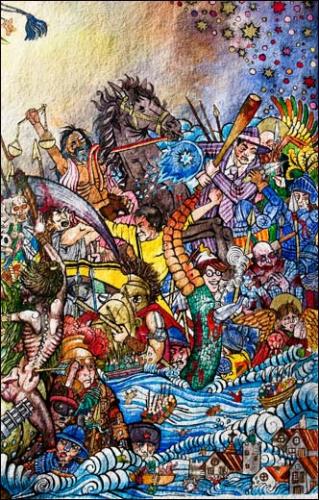 Agathe Pitié réalise de très grands dessins à l’encre, méticuleusement composés d’une multitude de personnages et de scènes qui se renvoient les unes aux autres. «Le métissage culturel imaginé par Agathe Pitié, véritable syncrétisme, crée un nouvel ensemble qui transforme radicalement la vision classique de chaque récit.»