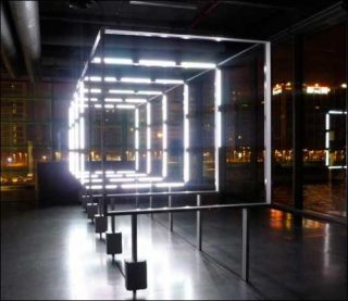 L’installation est autonome, elle se modifie aléatoirement en combinant des registres lumineux à partir des 72 barres lumineuses.