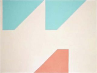 Dans cette série, la peinture acrylique est soigneusement étalée en aplats. La gamme chromatique est rigoureusement limitée à trois couleurs: le bleu turquoise, le rose orangé et le blanc «couleur de sable». Chaque composition teste des interactions nouvelles entre les couleurs, parfois au nombre de deux seulement, parfois au nombre de trois. Le turquoise et le rose dessinent des formes géométriques, soit triangulaires, soit trapézo‑idales. La règle est simple: le rose orangé est réservé aux formes tournées vers la gauche et le turquoise à celles tournées vers la droite. Les directions diagonales que prennent les formes suggèrent des mouvements dans le tableau. Mais l’agencement asymétrique renverse cet effet et donne une impression d’éclatement.