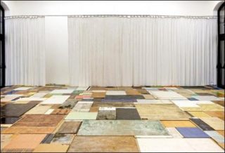 Dans l’exposition de Guillaume Leblon, le visiteur marche sur une œuvre, sort de l’Institut pour parcourir l’exposition, franchit des passerelles. Il se laisse méduser par des formes en latence, devine des objets enfouis dans la matière, se souvient d’une visite d’un mastaba ou construit un récit à partir de fragments.
