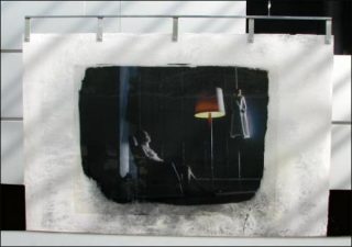 Pièce maîtresse de ce dispositif, la transparence comme support, la translucidité, fragilité de ce qui nous échappe, captures d’instants entourés de givre, possiblement déformés, froissés, superposés, voir carbonisés pour retrouver leur saveur originelle, celle du moment de leur arrivée sur le plateau.