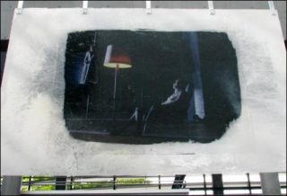 De ce laboratoire est né une série de vitraux, contemporains, qui restitue à ces corps présence et densité en les soustrayant à leur absence photographique. Coulures, tâches de couleurs, huiles ondulantes, gomme laque, pigments, vernis, jeté de pâte épaisse de peinture, riche, onctueuse, luisante. La sensation d’un geste vif et nerveux.