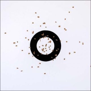 La toile Entretien avec une Å“uvre d’art reproduit celle sans titre d’Olivier Mosset composée d’un cercle noir sur fond blanc. Ici, le cercle devient une cible de tir à l’arc et le tableau est constellé d’impacts des flèches. Ce clin d’œil à la discipline sportive, que Jerome Cavaliere a longtemps pratiquée à haut niveau, révèle l’humour teinté de cynisme avec lequel il traite l’univers de l’art, auquel il se consacre désormais.