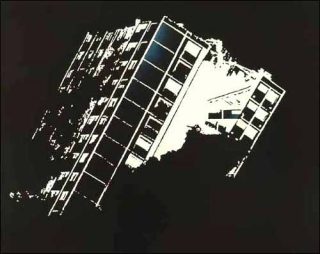 C’est par la déconstruction d’œuvres emblématiques de l’architecture moderne que l’artiste canadien Donovan Barrow exprime cette désillusion: la Villa Savoye de Le Corbusier, représentée en maquette de cuivre tel un objet d’art, est défigurée avant d’être reproduite sur toile, dans une lumière zénithale de musée. La destruction est également le thème des œuvres de David McBride, et fait écho à la technique employée, celle du pochoir sur bois, qui est absence-présence: le bâtiment, en phase d’effacement, apparaît en négatif, déjà comme un souvenir.