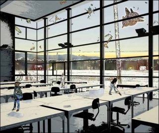 Une salle de classe, des tables, des chaises et une grande baie vitrée en guise de mur : ce décor est la base commune de This et de That, qui se font face dans la galerie.