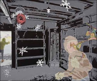 Dans le premier tableau, trois personnages miniatures prennent place sur les tables que l’un d’eux balaie, sous des formes indéterminées et colorées en suspension. Dehors on aperçoit, en bordure d’un champ enneigé, des maisons irisées de jaune, bleu et rouge par le soleil levant. En réponse, les trois couleurs primaires prennent place dans le second tableau du diptyque, dans un clin d’œil à Mondrian : la baie vitrée de That s’orne de trois carrés de verre coloré.