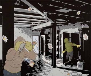 — A Lost Spring at the Edge of a Big Mess, 2008. Technique mixte sur toile. 50 x 60 cm