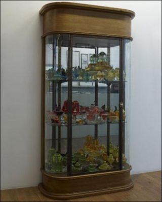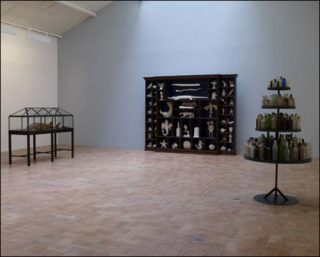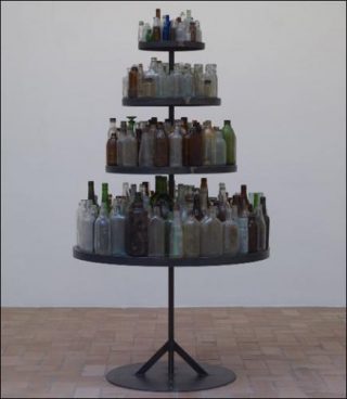 — Mark Dion, New England Bottle Dump Dig, 2010. Table à étages et bouteilles en verre. 152,5 x 91,5 x 91,5 cm