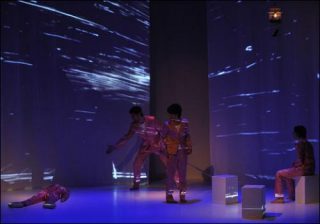 Dans une mise en abîme de l’espace scénique, la gestuelle s’organise avec illogisme, les actions réelles et non réalistes engendrent des scènes à l’air familier et saugrenu.