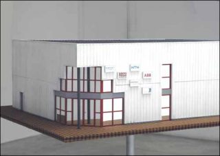 Plus loin, la pièce de Didier Marcel prolonge l’expérience des Becher lorsque ceux-ci ont entrepris de dresser un panorama photographique des usines allemandes en friche. Marcel s’attache à montrer des hangars de zones industrielles sur un plateau de démonstration tournant, désignant à la fois l’actualité pathétique de l’architecture contemporaine et le signe des temps d’une activité économique qui se délocalise à la périphérie des villes ou à la périphérie des pays riches.