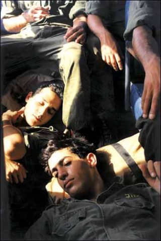 Dans cette exposition, les corps masculins — il ne s’agit en effet que de corps masculins — semblent figés dans d’improbables poses. Non que celles-ci soient incongrues ou inhabituelles, mais bien plutôt tellement esthétisées, travaillées que presque rien ne les rattache au réel, alors même qu’Adi Nes photographie cette réalité simple d’hommes vivant en Israël.