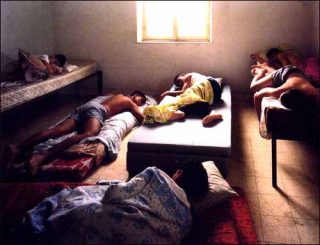 Les hommes deviennent les sujets de ce désir qu’Adi Nes revendique en affirmant son homosexualité. Or, ces corps, ces visages semblent n’avoir besoin d’aucun décor. Par exemple, un homme musclé pose devant les barreaux de ce que l’on suppose être la cellule d’une prison. Cet homme torse nu, les bras croisés sur la poitrine, fixe résolument l’objectif. Ce qui transparaît ce n’est pas sa situation difficile de prisonnier — certainement factice car construite pour la photographie — mais c’est le regard du photographe, de ce metteur en scène qui n’exprime ici que le désir masculin pour le masculin. Adi Nes l’affirme, « je suis intéressé par le fossé qui existe entre la réalité objective est celle qui existe dans mon esprit ».