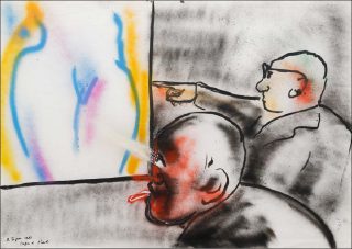 Nous avons tous déjà essayé l’aérosolthérapie ! C’est le nom médical du traitement des maladies respiratoires ou ORL par spray : les particules de médicament, en suspension dans un gaz, peuvent être projetées directement sur la muqueuse à soigner. De même, la spray painting « diffuse » dans la représentation : même portée par un autre medium, elle ne perd pas de son efficacité.