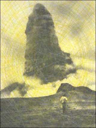 Réalisée à l’aide de Photoshop, la composition des tableaux aboutit à un résultat surprenant. Les images entassées ont fini par disparaître, laissant la place à une sorte d’abstraction vaporeuse. En dépit de leur grand format, les tableaux perdent leur consistance dans la blancheur des murs de la galerie.