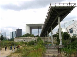 Du Paysan de Paris aux Passagers du Roissy-Express, l’espace urbain a toujours été voué à la traversée. Fluide et colorée, par la grâce de la caméra aérienne, à la fois proche et distante, de Valérie Jouve, elle peut être imaginaire, et en noir et blanc, comme une cabane éclatée de Daniel Buren, qui phagocyte, sans vergogne, un paysage pixellisé de Xavier Veilhan.