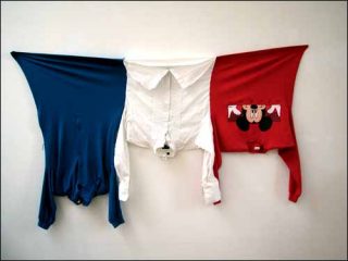 — National (Los Angeles), 2002. Fripes cousues. 190 x 130 cm .